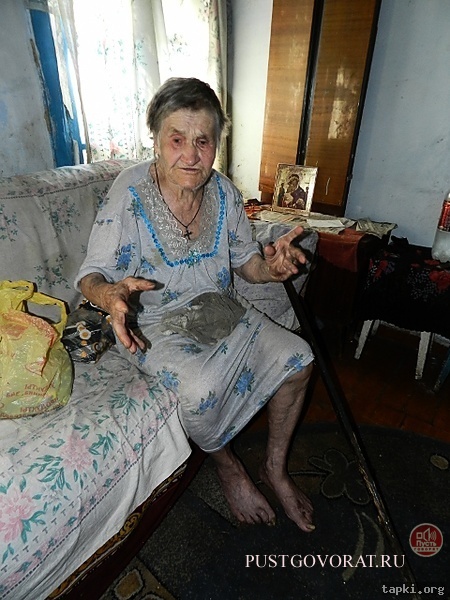 Уважаемые редакторы!Увидела статью об этой женщине.Её история поразила до глубины души.Прошу помочь ей.Сама проживаю в Ханты-Мансийском автономном округе,но не могу отаваться равнодушной к такой жестокости людей. Двоюродный брат рассказал мне про бабушку Федору — Федору Степановну Колосову. Ей 86 лет. У нее пять дочерей — Людмила, Валентина, Зоя, Галина, Тамара и сын Виктор. Сын уехал и потерялся, дочери живут в этой же деревне, где и мать их Федора. - Ты посмотри и сфотографируй, как она живет, — попросили меня все, кто был за столом. Собрали пакет с едой, поехали. Двенадцать километров по грунтовке, мы в деревне Киселёво. Восемьдесят лет назад это была самая большая деревня в округе. Дом Федоры в самом начале деревни, адрес: улица Мира,1. Около дома трава, по которой никто не ходил. Федора жива(фото приложены): Что рассказала нам бабушка? То, что пенсия у нее 15 тысяч, но 12 из них забирают дочери на почте. Ей дают только 3 тысячи. То, что государство выделило ей квартиру за 1 миллион 200 тысяч рублей, но квартиру дочери оформили на внучку, а ее из этой квартиры вывезли обратно в деревню. То, что кормят её баландой. То, что паспорт и все остальные документы дочери у нее забрали, и в больнице ее теперь не принимают. То, что дочь Зоя помогала ей и приходила, но сама обезножила и слегла. Сейчас к ней ходят чужие люди. Охапку дров принесут, надо дать 50 рублей. Воды ведро принесут — надо снова дать 50 рублей. И еще рассказала, что собирала себе на похороны деньги, но дочери их нашли и забрали. Мы пробыли в доме Федоры около сорока минут. Все сорок минут она плакала. Вот её двор(фото приложены): Её печь(фото приложены): Деревня Киселево находится буквально на границе Тюменской и Свердловской области