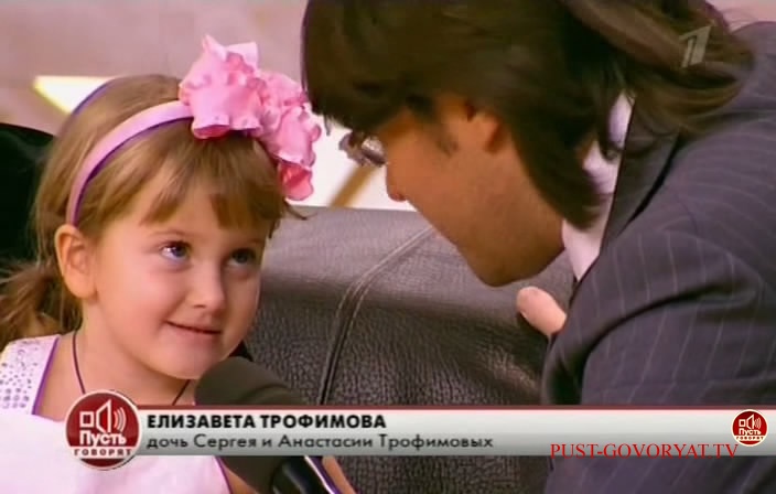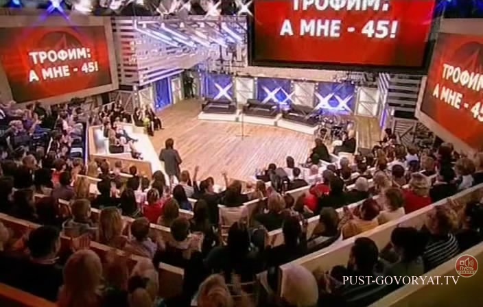 Официальное название передачи: Пусть говорят - Трофим - а мне 45! Название на английском языке: Pust' govoryat - Trofim - a mne 45! Ведущий программы: Андрей Малахов Дата выхода в эфир: 4 ноября 2011 года Телеканал: Первый Канал Место действия героев: Москва